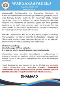 “Wasaaradda caafimaadka waxay tallaabo sharci ah iyo mid maamul ka qaadi doontaa cid kasta oo lagu helo mas’uuliyadda dhacdadaas”