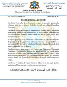 Sidoo kale Dowladda Federaalka ayaa si toos ah uga dalbatay maamulka Somaliland in ay joojiyaan ficillada shacabka dhib u geysanaya, isla markaana laga fogaado wax kasta oo xaaladda sii xumeeyn kara. Qoraalka warqadda ayaa ku cad:
