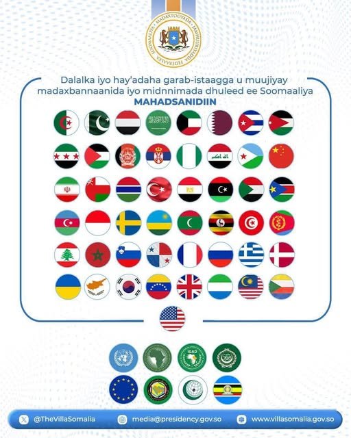 Qoraal ay soo saareen Dowladda Soomaaliya ayaa mahadcelin ballaaran logu jeediyay dalalka iyo hay’adaha caalamiga ah ee taageeray madaxbannaanida, wadajirka iyo midnimada dhuleed ee Soomaaliya.