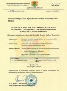 Hoggaamiyaha Ku-meel-gaarka ah ee Koonfur Galbeed Jabriil Cabdirashiid Xaaji, ayaa Cali Cabdulaahi Isaaq u-magacaabay Agaasimaha Guud Madaxtooyada Dowlad Goboleedka Koonfur Galbeed.