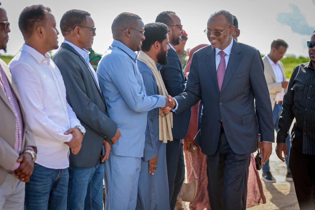 Ku simaha Gudoomiyaha Baarlamaanka ahna Gudoomiye ku xigeenka 1-aad Maxamed Nuur Maxamed Macalin, Wasiiro, Xildhibaano, Saraakiisha Hay’addaha Amniga iyo Qeybaha kala duwan Bulshada ayaa Wafdiga Madaxweynaha kuso dhoweyey Garoonka Diyaaradaha Dr Shaati-Gaduud ee Magaalada Baydhabo.