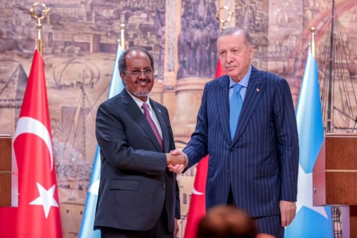 Madaxweyne Xasan Sheekh ayaa sheegay in iskaashiga Soomaaliya iyo Türkiye uu ku saleysan yahay difaaca midnimada iyo madax-bannaanida dalka, la dagaallanka argagixisada iyo dhismaha hay’ado dowladeed oo awood leh, kuwaas oo saldhig u ah horumar waara iyo kor u qaadista nolasha shacabka Soomaaliyeed.