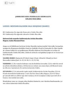 Waxaa si rasmi ah loo gudbiyay mooshin ka dhan ah Guddoomiyaha Golaha Shacabka, Sheekh Aadan Maxamed Nuur (Aadan Madoobe), kaas oo looga dalbanayo in kalsoonida lagala noqdo.