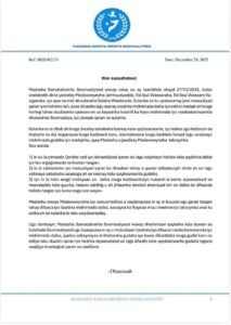 Warsaxaafadeedkan wuxuu madaxweynaha ugu baaqay;