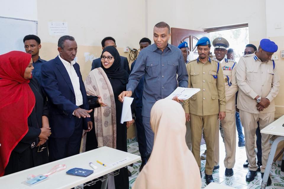 Ra’iisul Wasaare Xamsa Cabdi Barre , ayaa uga mahadceliyey ciidanka ammaanka kaalinta ay ka qaadanayaan xaqiijinta ammaanka goobaha lagu qaadayo imtixaanka iyo gaarsiinta warqadaha imtixaanka goobaha ka fog caasimadda, iyada oo la adeegsanayo diyaaradaha qummaatiga u kaca ee ciidanku ay leeyahay.