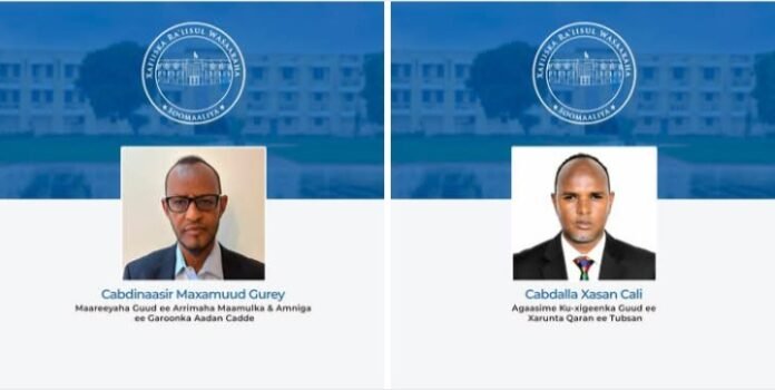 Ra’iisul Wasaaraha Xukuumadda Jamhuuriyadda Federaalka Soomaaliya Mudane Xamsa Cabdi Barre, ayaa magacaabay Maareeyaha Guud ee Arrimaha Maamulka iyo Amniga Garoonka Muqdisho iyo Agaasime Ku-xigeenka Guud ee Xarunta Qaran ee Tubsan.