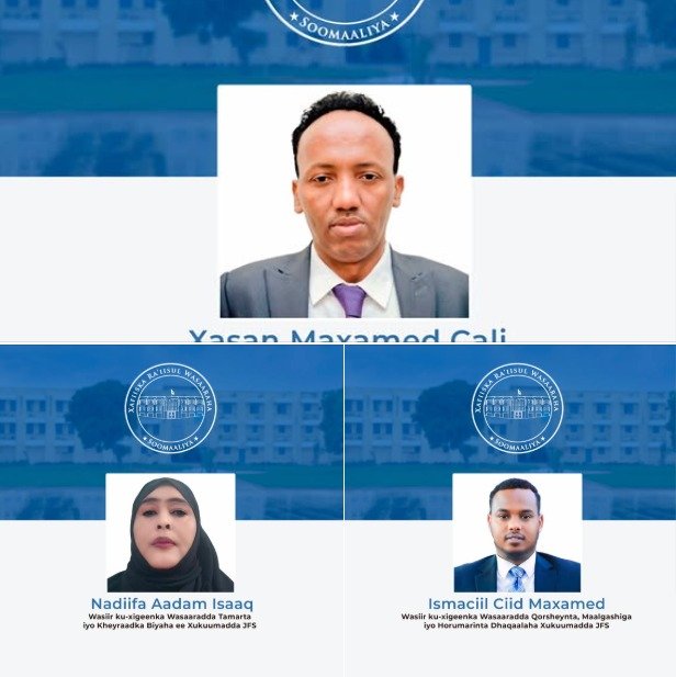 Ra’iisul Wasaaruhu markii uu arkay howlaha baaxadda leh ee horyaalla Xukuumadda, isla markaana gudanaya waajibka dastuuriga iyo talada Madaxweynaha JFS, waxa uu magacaabay Wasiir Ku-xigeennada cusub ee kala ah: