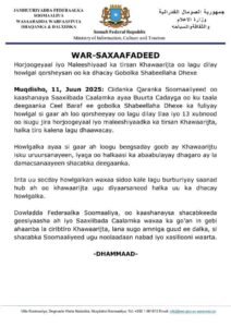 Wasaaradda Warfaafinta ee Xukuumadda Federaalka Soomaaliya ayaa qoraal ay soo saartay ku sheegtay in Howlgal qorsheysan oo ay si wadajir ah u fuliyeen Ciidanka Qaranka Soomaaliyeed iyo Saaxiibada Caalamka lagu dilay xubno muhiim ah oo ka tirsan kooxda Khawaarijta Al-Shabaab.