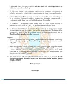 xaajiga/xaajiyada Soomaaliyeed, wakhtiyada lacag bixinta ay ku eg tahay, wakhtiyada la diyaarinayo teendhooyinka Mina, iyo Carafa, iyo waqtiyada la kireynayo, lana bixinayo lacagahooda hoteeladii ay ka degi lahaayeen xujeyda Soomaaliyeed magaalooyinka barakeysan Madiiina Almunawara iyo Makka Almukarrama, inta lagu guda jiro mowsimka xajka.