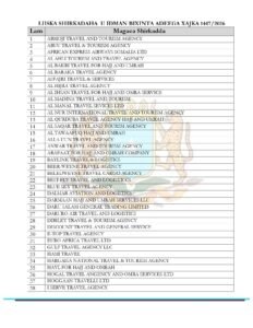 hirgelinta iyo fulinta jadwalka shaqo ee arrimaha xajka,